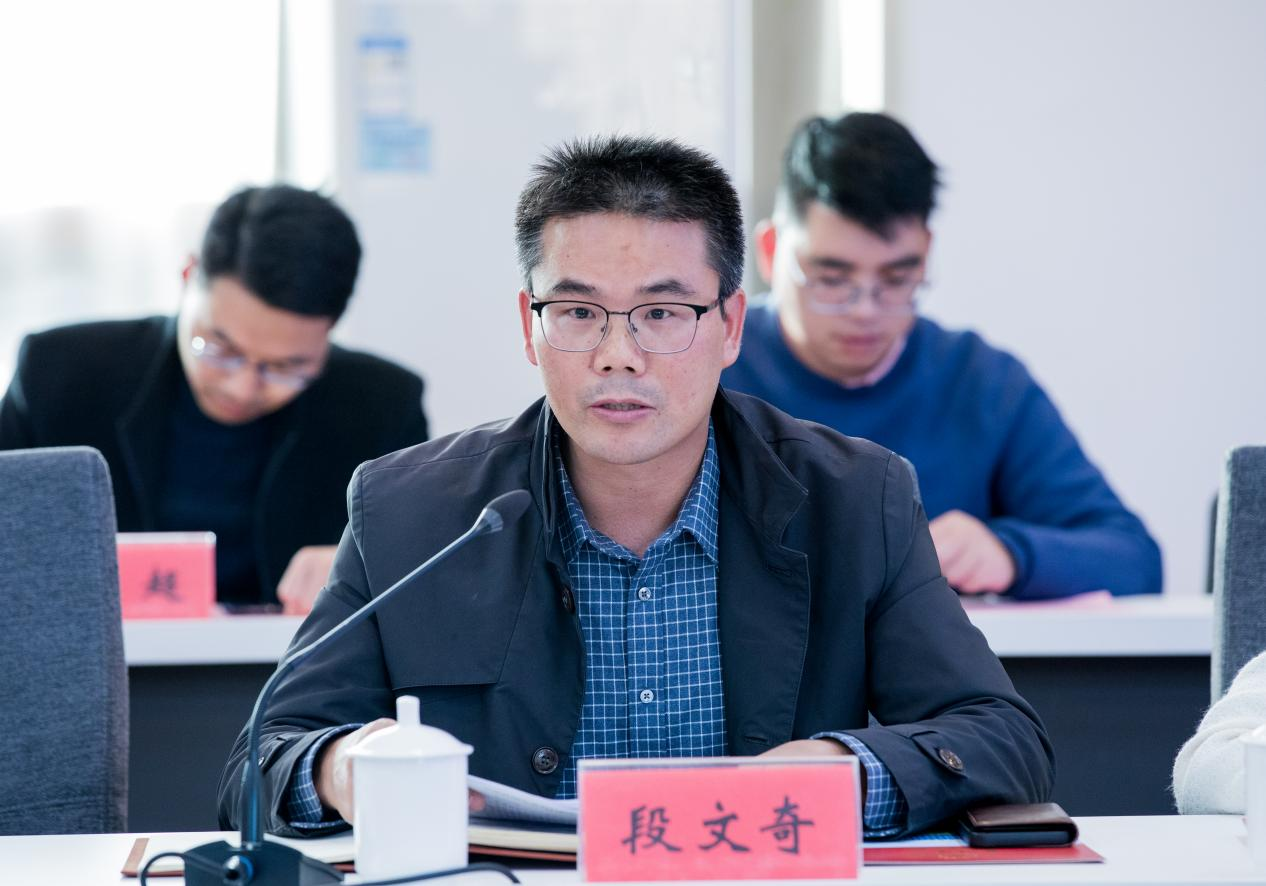 图为商学院院长段文奇表态发言