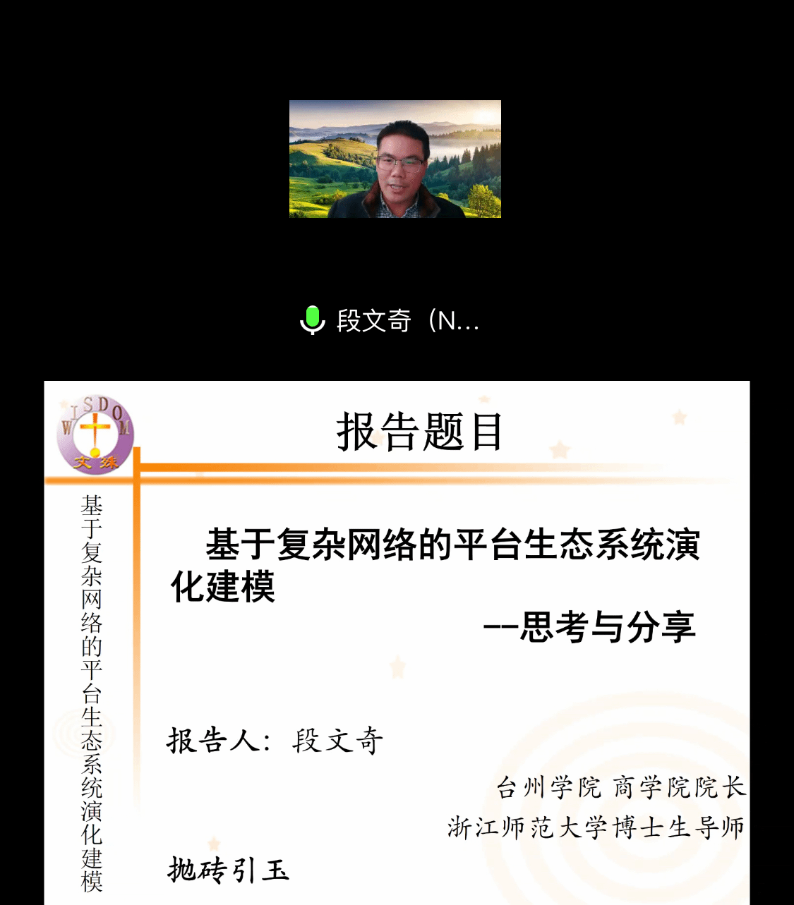 12月22日下午,商学院在线上举行学科学术带头人论坛,论坛由商学院院长段文奇主持,学院班子成员、全体教职工参加,北京师范大学唐任伍教授、校研究室主任周良奎应邀出席本次论坛。