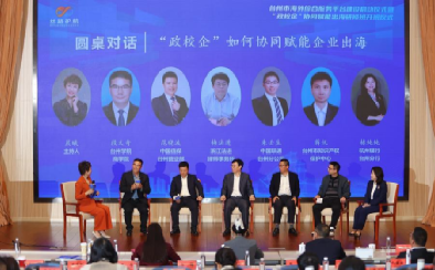 活动的最后,一场以“‘政校企’如何协同赋能企业出海”为主题的圆桌对话热烈展开。来自台州学院、中国信保台州营业部、台州市知识产权保护中心等单位的专家学者围坐一堂,围绕海外综合服务平台的长效运行机制、人才培养与政策协同等话题深入交流。段文奇结合商学院在国际经贸人才培养、产教融合实践中的经验,提出高校应立足学科优势,推动人才培养与企业需求同频共振,通过共建实训基地、联合开发课程、开展定向培训等方式,为企业出海输送复合型人才。与会嘉宾各抒己见、建言献策,共同凝聚起“政府搭台、高校赋能、企业发力”的协同发展共识。