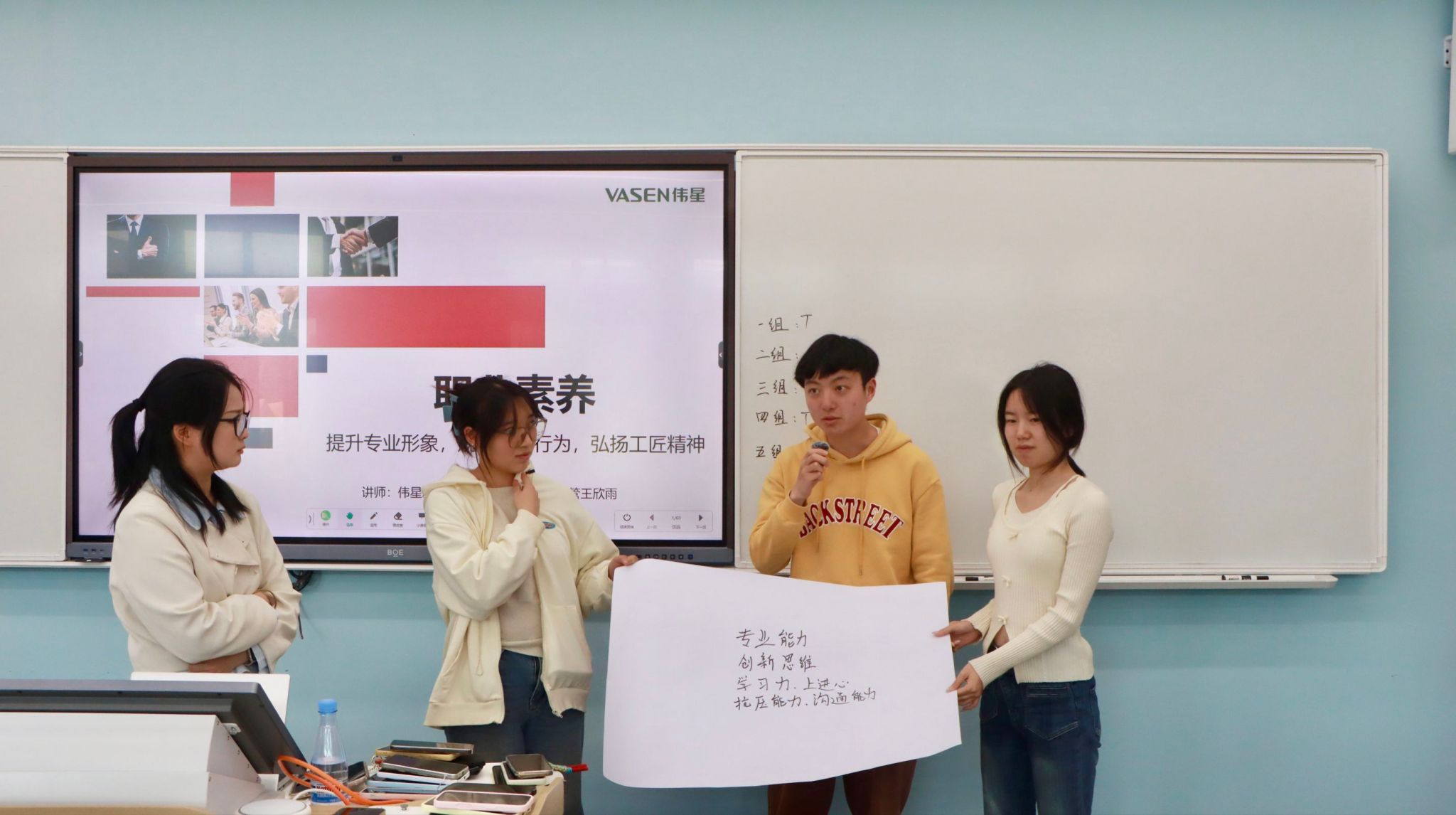 随后,王欣雨以商务礼仪为核心开展专题授课,结合企业用人标准与职场实际,系统讲解职业形象、沟通礼仪、办公交往、行为规范等实用内容,帮助同学们树立正确职业意识、提升综合职业素养。活动现场氛围热烈,学员们收获颇丰。