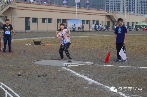 彩旗队、仪仗队和各院级代表方阵依次入场后是精彩绝伦的开场表演,直接点燃了现场气氛,并随着赛事的进行持续沸腾。赛场上,经管健儿奋力拼搏,为学院的荣誉而战,充分贯彻了“经管精英,敢闯敢拼”的精神;观众席里,拉拉队员和同学们为运动员们加油呐喊,擂鼓助威,鼓舞了士气;服务站内,团学成员们细心为运动员服务,提供姜茶、药物等,做好了后勤保障工作。在各方的共同努力下,我院第一天的收获硕果累累:徐迪娜获得女子甲组100米栏第三名,汪丽霞获得女子甲组标枪第三名,朱晨晨和吴一波分别斩获男子和女子甲组400米第三名。在教职工比赛中,冯小俊老师更是获得了女子乙组铅球第一名的好成绩。当然,没有获得名次的运动员们也不用气馁,你们的体育精神依然令我们感到骄傲。