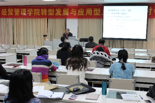 研讨会上,学院五位专业负责人联系专业实际,汇聚教师们的集体智慧,结合PPT展示,就学院转型发展及应用型人才培养进行汇报,提出了许多建设性意见,从社会需要什么样的人才及人才培养现状,师资队伍建设,学科专业建设,人才培养计划修订,课堂教学改革,实践性教学环节落实,下阶段工作重点等方面,阐述了学院转型的必要性、可行性、难点和切入点。