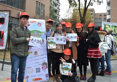 3月25日中午,经管学院学生第一党支部组织预备党员和入党积极分子,在椒江校区食堂门口设点,向过往师生分发《台院生活宝典》纸质漫画,引来众多师生的热情关注。活动现场,校友志愿者头戴小红帽,带着满面着笑容热情地介绍漫画作品。许多老师也受活跃的气氛感染,手持《生活宝典》漫画站在宣传海报前合影留念。Q版的漫画人物,条理清晰的内容安排,简洁有趣的温馨话语,打破了枯燥、生硬的规范条例,赋予校纪校规“条条框框”以新的活力。