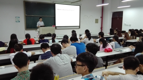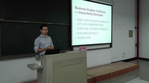9月24日晚,剑桥商务英语考官楼璐铮应学院邀请来校作《剑桥商务英语BEC备考及职业发展》讲座,我院国贸专业学生参加讲座。