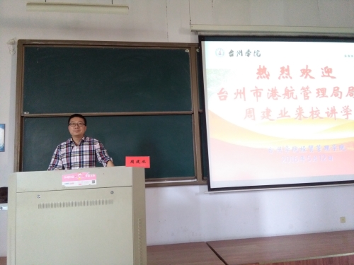 5月12日下午,台州市港航管理局局长周建业应经贸管理学院邀请在椒江校区2303教室作《中国海洋与海军战略》讲座,学院大一、大二年级近260位学生参加讲座,学院党总支书记王凌主持讲座。
