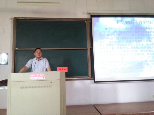 周局长从钓鱼岛维权、郑和下西洋说起,与大学生一起探讨海洋大国呼唤海洋战略,海洋战略呼唤蓝水海军,确立海洋战略和建立蓝水海军需要国人共同努力,主动拥抱中华海洋世纪的到来等中国海洋与海军战略问题。分析我国近中期海洋战略目标和远期海洋战略目标,阐述海军作为一个综合性战略军种与国家安全利益、国家外交政策、国民经济发展和国家科学技术进步的密切关系及其产生的巨大影响。同时向大学生介绍美国及亚洲有关国家的海洋战略和军事战略。