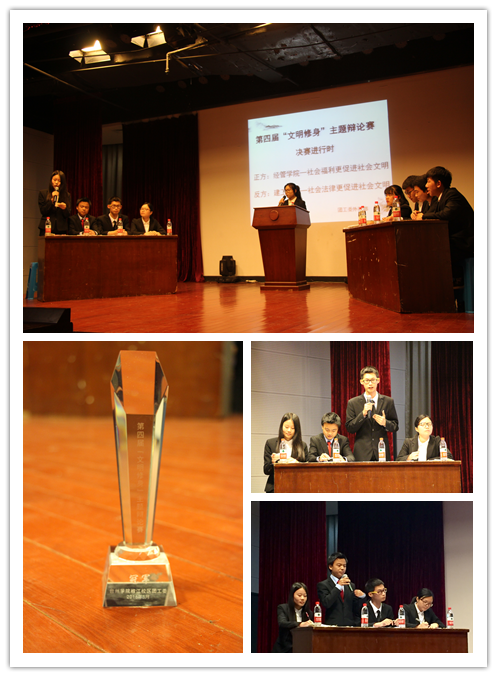 5月10日晚,椒江校区第四届“文明修身”主题辩论赛决赛的战锣在大学生活动中心敲响。我院作为正方与反方建工学院对冠军展开了激烈的争夺。