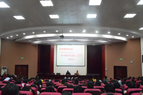 12月21日下午,经贸管理学院2017届毕业生实习就业动员大会在校学术报告厅举行。学院分管领导、辅导员出席,全体毕业班学生参加。