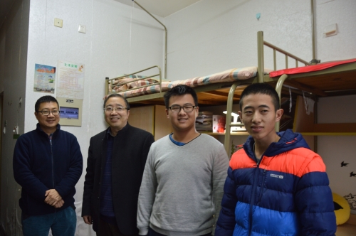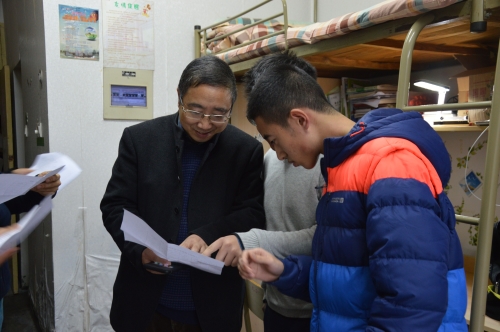 1月12日下午,王正副校长参加完经贸管理学院领导班子民主生活会后,来到经管学院学生公寓调研走访,指导文明寝室建设,并亲切看望了自己联系的寝室和结对学生。