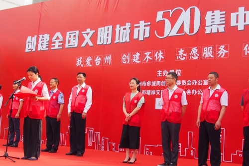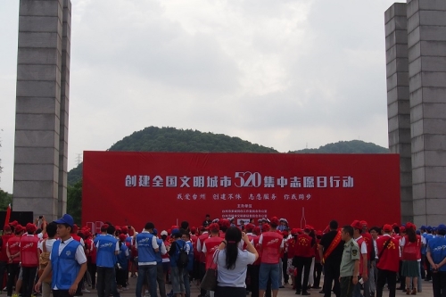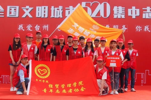 5月20日是很多青年人表达爱意的日子,我市志愿者们也在这一天用自己的行动表达对台州这座城市的热爱。当天,创建全国文明城市520集中志愿日行动启动仪式在台州市市民广场隆重举行,本次活动的主题是“我爱台州 创建不休 志愿服务 你我同步”,经贸管理学院志愿者突击队参与本次启动仪式。