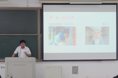 5月24日下午在椒江校区2203举办经管学院台商大讲堂。本次交流的主讲人为台州学院08届市场营销毕业生、给力教育股东、市场总监张文斌。学生骨干和学生代表200多人聆听了讲座。