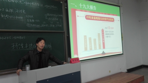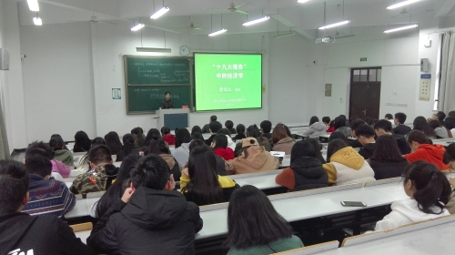 11月30日下午,经贸管理学院邀请浙江师范大学经济与管理学院硕士生导师曹荣庆教授来校作《十九大报告中的经济学》学术讲座,学院院长杜才平主持讲座,学院经管类各专业学生参加。