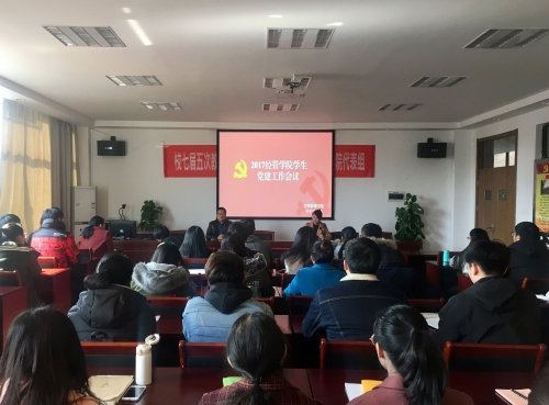 12月22日,学院在党员之家开展2017年度学生党建工作报告会。党总支书记王凌出席并作指导,各学生支部书记以及学生党员参加会议。副书记潘垚主持会议。