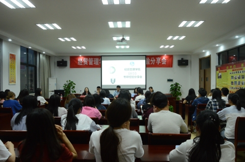 6月1日晚,经贸管理学院在经管大楼303会议室举办2018年考研经验分享会,4位考研成功的同学作为分享嘉宾,应邀回校与同学们分享考研经验。学院党总支副书记潘垚、学院培训部主任叶才华出席分享会,辅导员赵之遐主持。