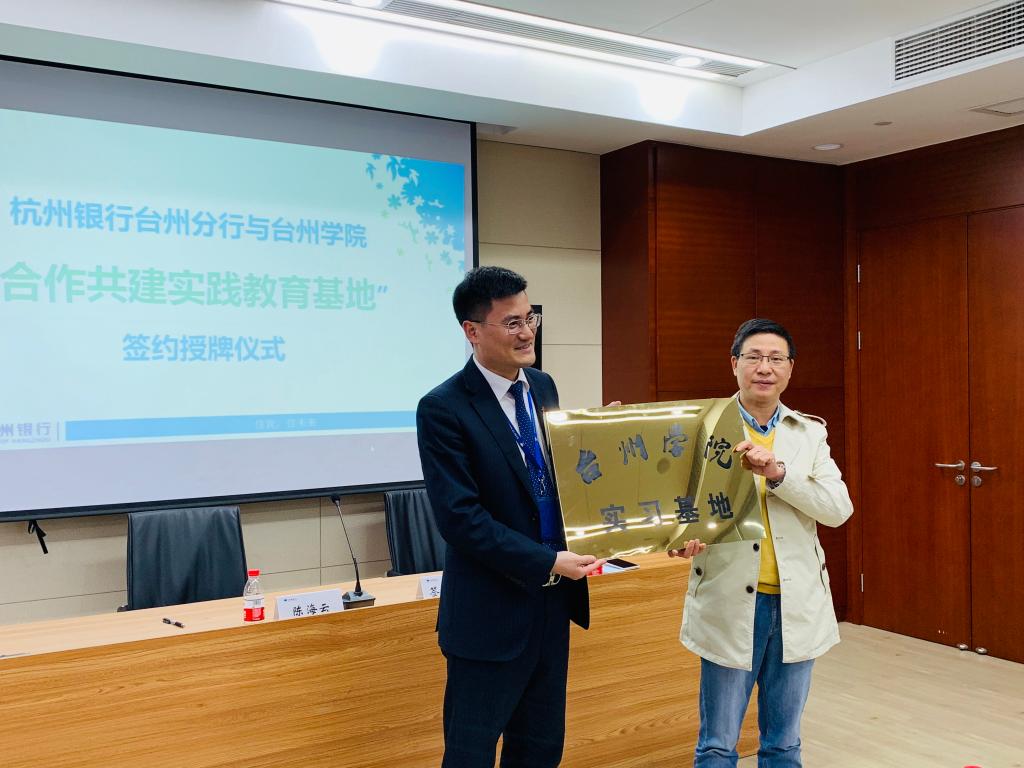 签约仪式上,商学院院长杜才平指出, 台州学院是一所地方性本科院校, 一直坚持 “地方性 、应用性”的办学定位,努力培养服务地方经济社会发展的高素质应用型人才;学院高度重视实践环节教学,注重学生的实践创新能力培养,着力提高应用型人才培养质量,加强校企互动,把金融学学科办在金融行业上,把金融学专业办在金融机构上,人才培养就会有很强的适应性。杜院长希望,以本次合作共建实践教育基地为契机,进一步加强学院与地方的联系,通过共同努力,使双方的合作交流取得良好成效。杭州银行台州分行行长陈海云强调,本次项目合作,杭州银行将为台州学院的学子们提供专业的金融机构实践机会,为台州学院探索创新型人才的培养模式提供平台;校企合作是人才发展战略的需要,希望双方在人才培养等方面深入开展合作,实现互利共赢。