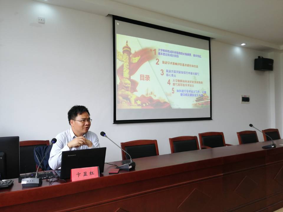 为了大抓学科建设,提升学院教师科研能力,5月9日,商学院举办学术活动月启动仪式,邀请浙江工商大学卞显红教授来校作《教师梦 科研梦——大学教师如何炼成科研强者》学术报告,学院全体教职工参加,杜才平院长主持并讲话。