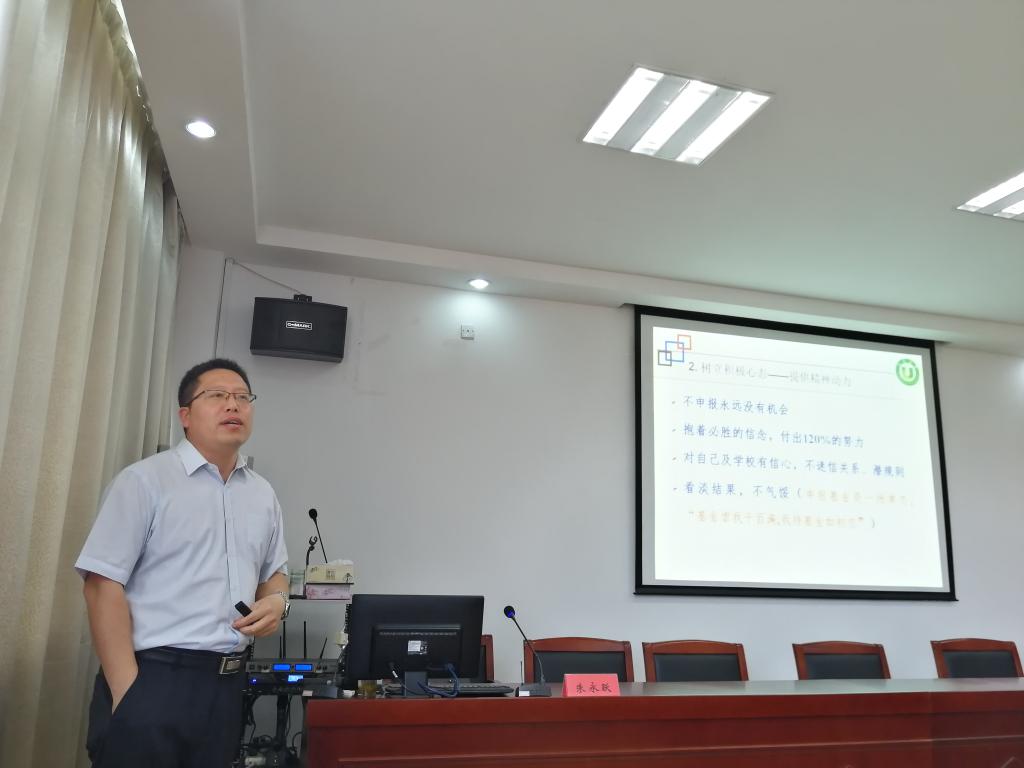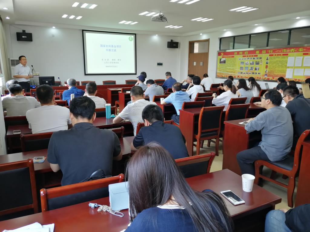 5月23日,商学院邀请江苏大学博士生导师朱永跃教授来校作《国家社科基金项目申报》专题讲座,商学院党总支书记周全宝主持,商学院教职工、学校其他学院部分教师参加讲座。