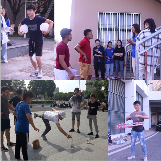 本次活动在大圆盘、商学院大楼、心湖、大礼堂等七个地点设置游戏点,跑遍台院,发现台院别样的美。“扎脚的青春”、“头脑王者”、“企鹅漫步”等游戏,都极为考验室友之间的默契度,活动中大家一起努力的样子,让我们充满力量和感动。热闹欢快的游戏氛围更是吸引了众多留学生前来参加。在活动期间,参赛队伍热情高涨,在每一个游戏点奋力拼搏,在这里,我们能触摸到跳跃的青春音符,感受到燃烧的活力,体会到四射的光芒。