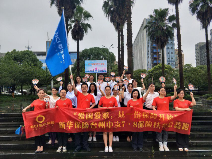 7月4日,实践队员以饱满的热情与新华保险台州中支员工一起参加“7.8保险扶贫公益跑”,助力公益事业。他们青春律动的身影成为城市一道亮丽的风景线,他们充满正能量的合影入选浙江省保险学会相关活动报道。