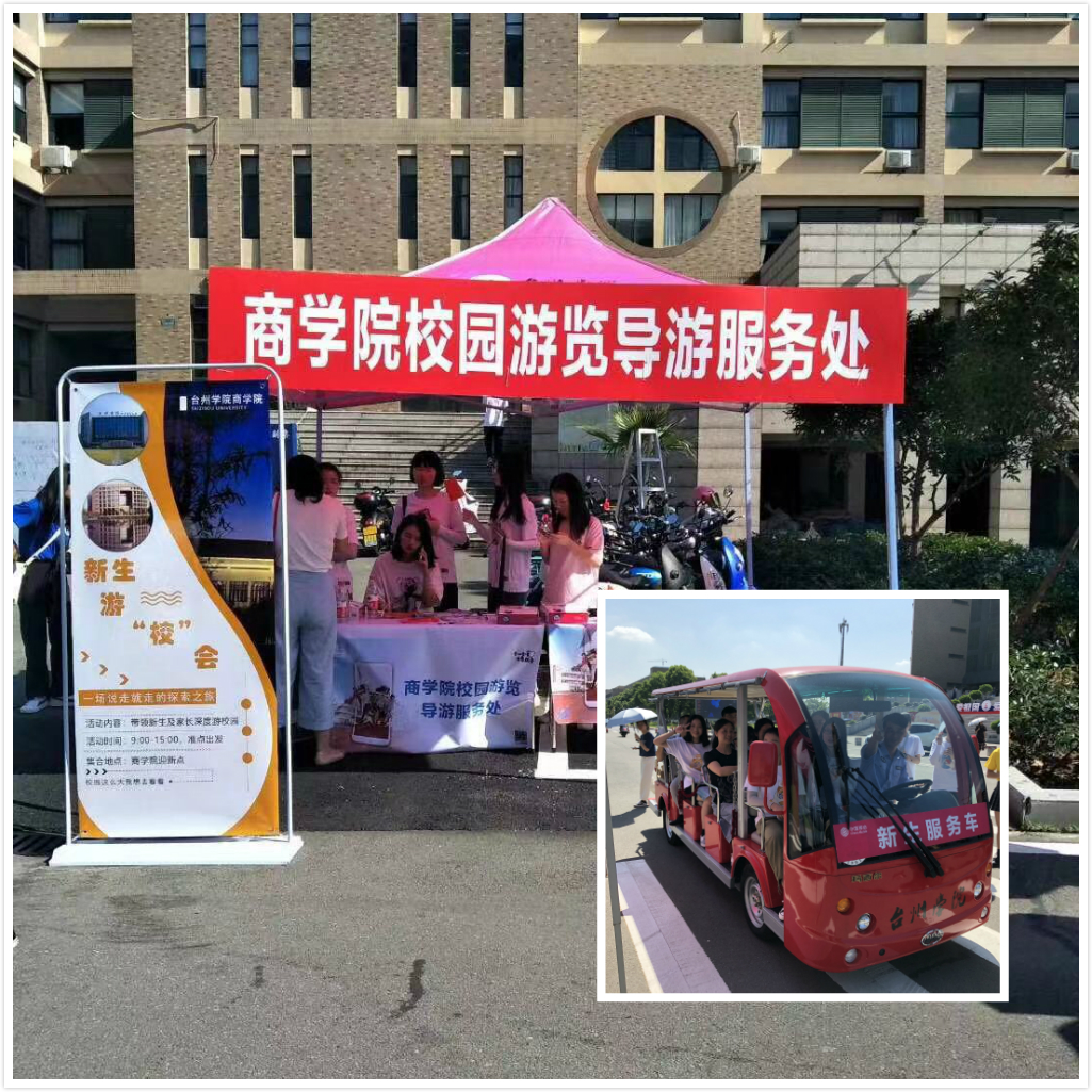 “新生游校园活动”是今年迎新的一大亮点。该活动是由旅游协会的学生们带领新生家长乘坐观光车从图书馆门口出发深度游览台州学院,并且途中为他们详细讲解台州学院的各个建筑的位置及用途。新生和新生家长都热情参与,乘坐观光车的人络绎不绝。校保卫处大力配合提供校园观光车辆给这项活动带来了极大的便利。这项活动不仅提升了旅游管理专业学生的实践水平,同时也使新生们能够更快地了解学校概况。