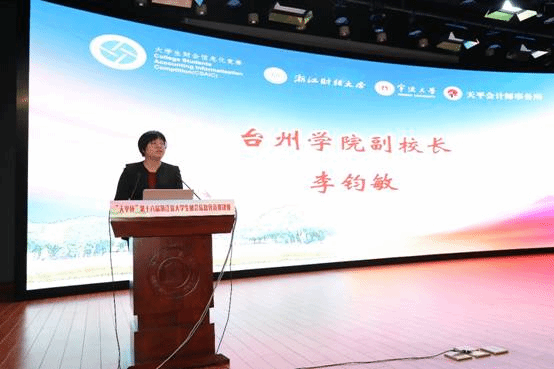 随后,副校长李钧敏在仪式上致辞,她对竞赛组委会给予台州学院的信任和厚爱表示衷心感谢,表达了对所有参赛选手的肯定以及对下届大赛的美好展望,表示有信心和决心,以最饱满的热情,筹备和组织好赛事,以“妈妈式服务”换“五颗星好评”,最后,对省内外高校师生发出了最诚挚的邀请,期待明年与大家相约台院校园。