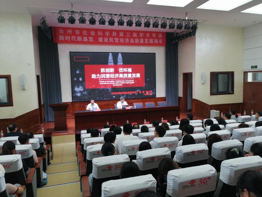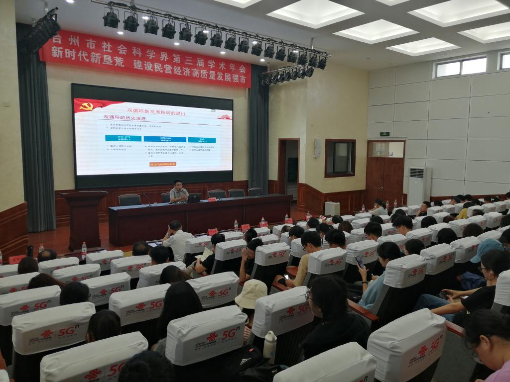 9月17日下午,台州学院商学院、台州市经济发展研究院联合举办“台州市社会科学界第三届学术年会分论坛”。本次论坛的主题是新时代新垦荒,建设民营经济高质量发展强市,邀请了台州市委政策研究室副主任周霖博士、台州市经济发展研究院执行院长董智勇博士作报告,学院党政领导、部分教师及学生140多位出席,杜才平院长主持论坛。