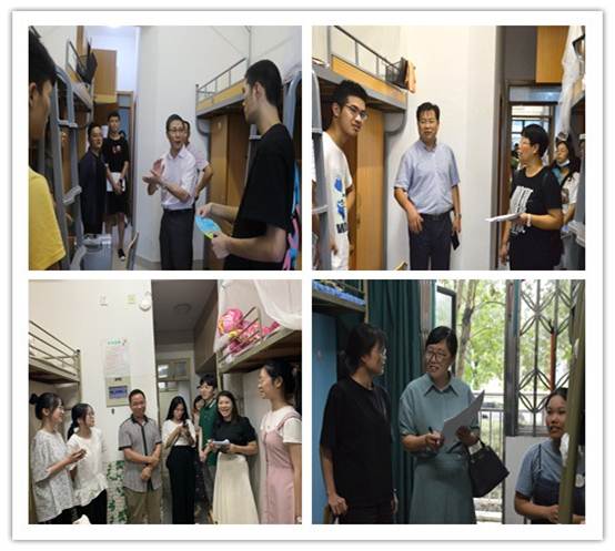 9月16日下午4:00,倾盆大雨却阻挡不了商学院的迎新热情。情系新生、以心迎新,风里雨里,商院等你。商学院党政领导携各专业系主任、班主任以及辅导员,冒着大雨逐一走访新生寝室。每到一个新生宿舍,学院领导、老师与同学们便开始亲切地攀谈起来,询问同学们对新学校、新环境、新宿舍的感受,与新生拉家常,了解同学们家里的情况;并叮嘱同学们要尽快转变身份,适应大学生活,加强自主学习意识、安全意识,认真学习、夯实专业,积极参与校园文化活动,同时做好职业规划,学有所成。