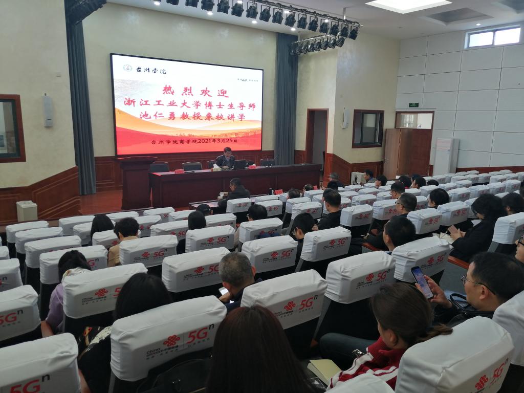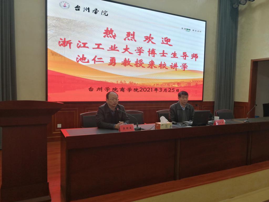 3月25日下午,浙江工业大学博士生导师池仁勇教授应邀来校给商学院教师作学术报告,校纪委书记吴国庆出席并作指导讲话,学院全体教师及辅导员参加,副院长陈国栋主持。