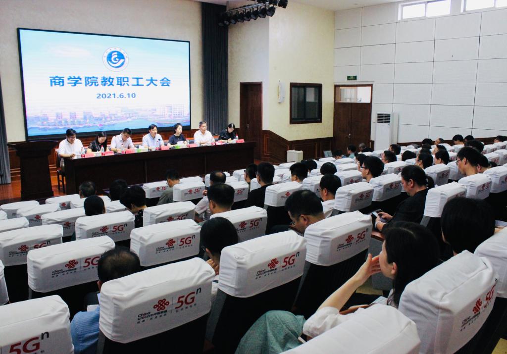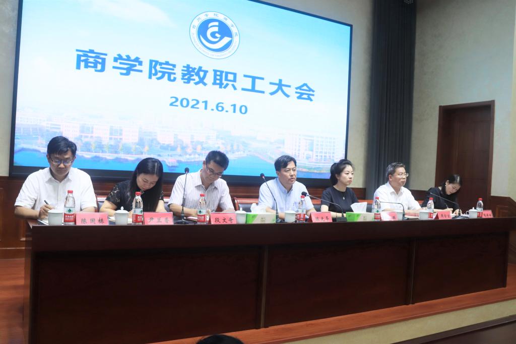 6月10日下午,商学院在506报告厅召开新任院长送任会。校长陈光亭、组织部常务副部长潘瑛、学院全体教职工出席会议,会议由学院党总支书记周全宝主持。