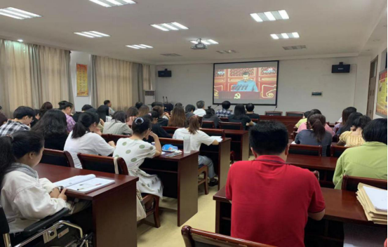 2021年7月1日,商学院党委组织党员师生在党员之家集中观看庆祝中国共产党成立100周年大会,学习习近平总书记重要讲话精神。