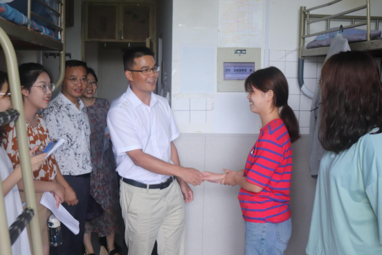 走访过程中,气氛热烈温馨,学院领导、老师与同学们热情握手、亲切交流,详细询问了新生们的基本情况、对新环境的适应情况,提醒同学们提早做好大学生涯规划,珍惜时间,以梦为马,不负韶华。同时院领导希望新生们提高安全防范意识,保护好个人人身财产安全;要注意个人文明养成,以寝室为家,团结室友,做相亲相爱一家人。