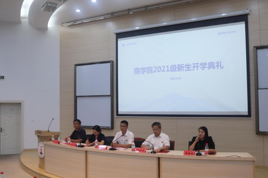 9月12日下午,商学院在学术报告厅召开2021级新生开学典礼。商学院党政领导、系部主任、辅导员和21级班主任、全体学生出席典礼。学院党委副书记鲍婷婷主持典礼。