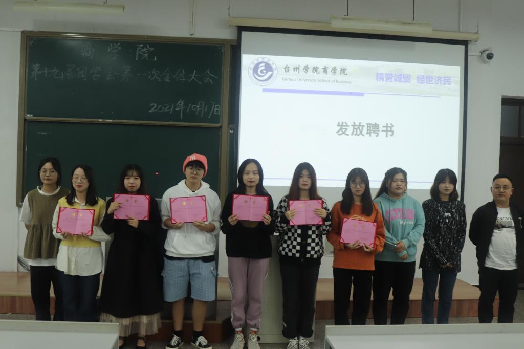 之后,上一届部分主席团成员向大家分享学习和工作经验,吴琼表示在工作中遇到坎坷时,保持热情很重要,同时建议大家重视纪律,要有良好的时间观念;宋青则从亲身经历出发,强调工作过程中沟通的重要性,遇到问题要多与部长和其他成员协商;陆梓妍则指出大家应有个人明确的规划和目标,合理分配学习和工作的时间。最后主席团和各部门依次亮相,依次自我介绍,展现出商院学子良好的精神风貌。