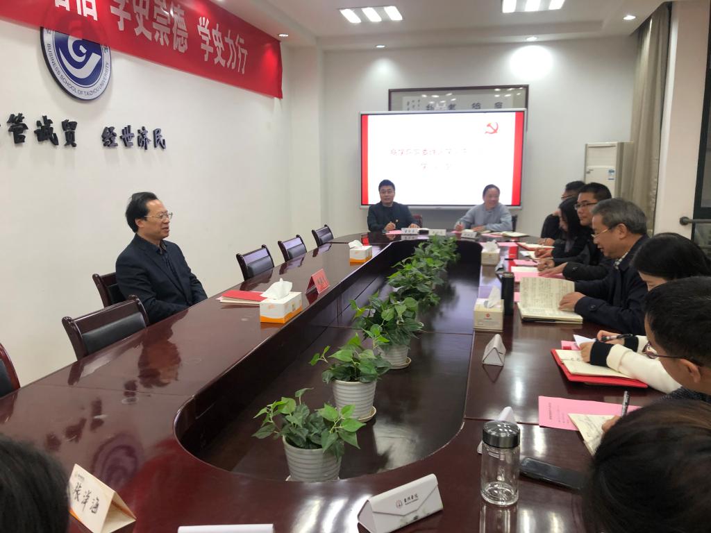 潘通天书记讲话强调,党的十九届六中全会是党在过去一百年取得光辉成就后、开创第二个百年之间的重要会议,在党的历史上占有重要地位。他要求商学院以学习贯彻党的十九届六中全会精神作为当前和今后一个时期的重大政治任务,党员领导干部要带头学习,积极做好宣讲工作,要走到师生中间去主动宣讲,让广大师生迅速了解学习领会十九届六中全会精神。学院要以党的建设为引领,以立德树人为根本,以申硕升格创一流为目标,实现党的建设与业务工作同频共振。