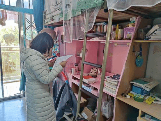 此次检查分组分区域进行,由各位老师和主要学生干部分别带队,对违规电器、私拉电线、消防通道、饲养宠物等进行着重排查,发现问题及时记录并提出整改意见。活动中,老师们和同学们进行了亲切的交流,叮嘱大家在认真学习的同时,要注意遵守学校规章制度,安全无小事,确保寝室安全稳定。