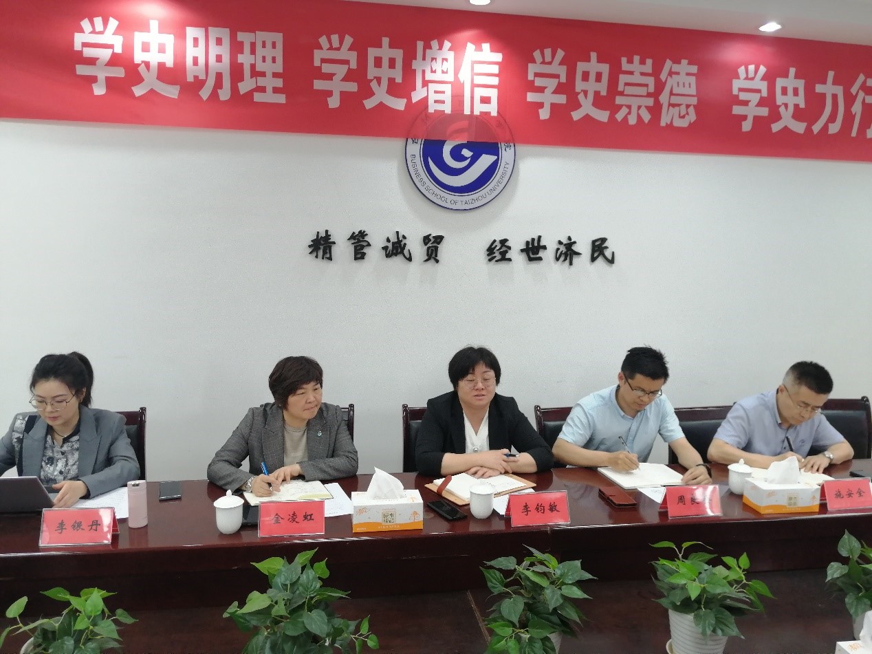 段文奇汇报了商学院应用型人才培养五个方面思路和举措。一个定位是培养应用创新型人才;两条路径是走区域化和数字化建设之路;三个支撑是做强产业学院,专业与产业学院深度融合,建设好应用型师资团队;四个主体形成合力,学生为本、教师主导、行业产业协同、政府引领;聚焦五类应用型人才培养成果,抓好学科竞赛工作,加强教学案例研究,建设一流专业,建设一流课程,培育有社会影响力的教学成果。同时,指出了学院应用型人才培养三点困难,新商科人才培养体系亟待完善,教学科研及地方服务的协同育人机制尚未有效运行,新商科师资队伍建设难以很好满足应用创新性人才培养需要。学院分管领导汇报了新商科建设、产业学院建设、大学生思想政治教育、大学生就业等应用型人才培养的实施情况、存在问题以及下一步打算。