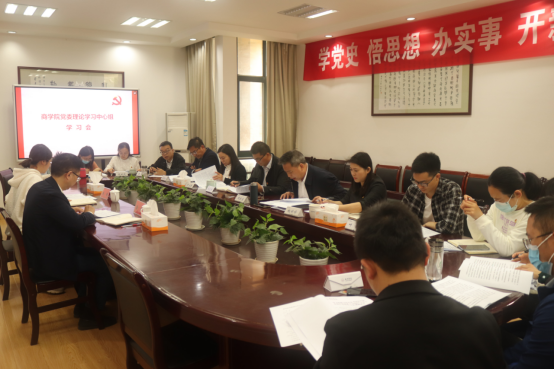 5月19日,商学院党委举办理论学习中心组研讨会,专题学习《习近平在庆祝中国共青团成立100周年大会上的重要讲话》。校党委委员、宣传部部长金松一行到会指导,学院班子成员、党委委员、党支部书记和分团委书记参加会议,学院党委书记周全宝主持。