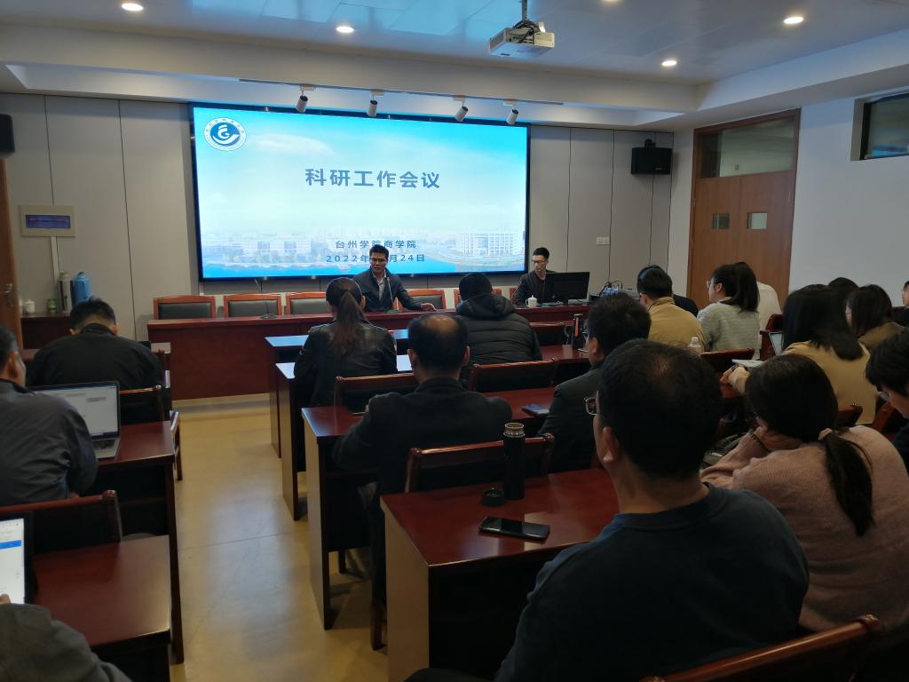 11月24日,商学院召开科研项目申报经验分享交流会,学院院长段文奇,副院长叶永,全体科研骨干教师参加会议。