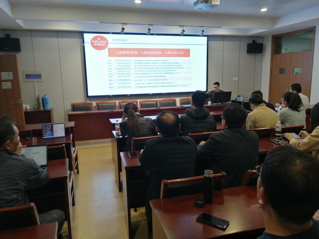 叶永在交流会上与老师们分享了《如何撰写一份优秀的申报书——浅谈我的课题申报经验》,具体介绍了自己在申报省部级国家级课题上的失败和成功经历。在课题准备上不要去尝试申请自己没有任何研究基础的课题方向,要多关注国家发展战略,多听学术讲座,多参加国内外会议,多请专家帮忙指导。在选题上强调要有创新的选题,什么是创新的选题以及创新选题的重要性。在申报书撰写上要注意研究目标、研究内容、研究方案、科学问题、创新之处/题目、选题依据、研究内容、思路方法、创新之处等的逻辑关系,做到各司其职,不要有重复。申请书要能让评审专家非常明白三个问题:研究什么?研究有什么重要性?我们为什么能做好研究?总的来说,只要老师们坚持用心,认真去准备申报,拿省部级国家级科研项目其实并不难。