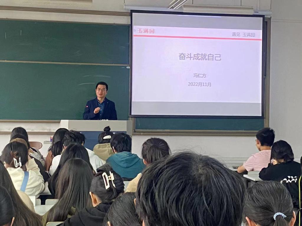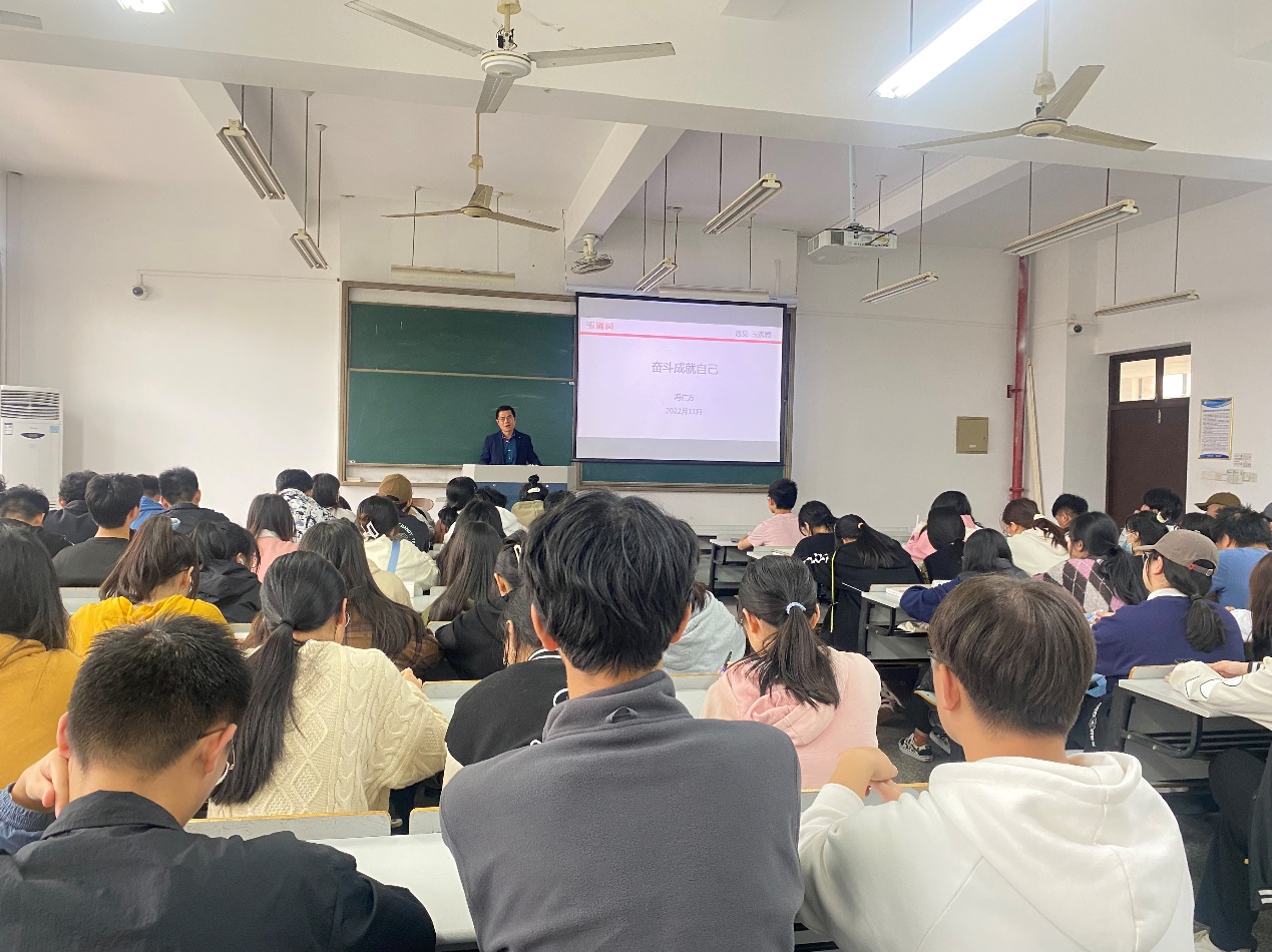 11月25日下午,商学院邀请优秀校友冯仁方来校,为大一学生作“奋斗成就自己”的生涯规划指导专题讲座。