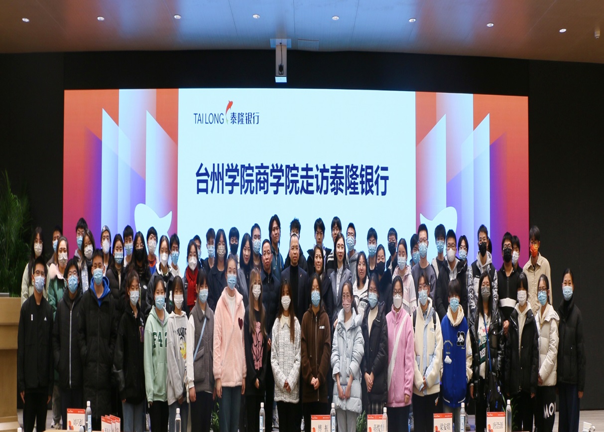 为拓展学生对职场的认知,近日,商学院党委副书记鲍婷婷、台州小微金融学院副院长陈耸、金融学系主任蒋俊贤率相关辅导员、班主任及金融学、金融学(小微金融)学生走进泰隆银行台州分行,开展“走进台企”参观交流活动。