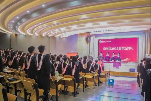 花开盛夏季,逐梦启航时。6月6日晚,商学院2023届毕业典礼在椒江区大学生活动中心隆重举行。商学院党政领导、系主任、教师代表、优秀校友代表、毕业班班主任、辅导员、用人单位代表及全体毕业生出席,党委副书记陈斌岚主持典礼。