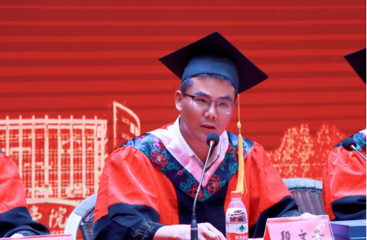 商学院院长段文奇致辞,他向毕业生送上了真挚的祝福,回顾四年来毕业生和学院共同成长的足迹和取得的丰硕成果,并对他们提出三点要求:坚守理想,志存高远;终身学习,追求卓越;学会感恩,宽容待人。祝愿同学少年时不怯年少,用年轻勇敢的心去搏击,打造属于自己和台院的辉煌明天。