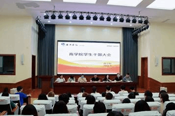 为进一步加强学生干部队伍建设,保证在期末来临之际学生工作平稳有序进行,6月18日晚,商学院在506会议室举行全院学生干部大会,学院党委书记马斌、党委副书记陈斌岚、全体辅导员及团学会成员、全体班长团支书学习委员和支部委员参加会议。