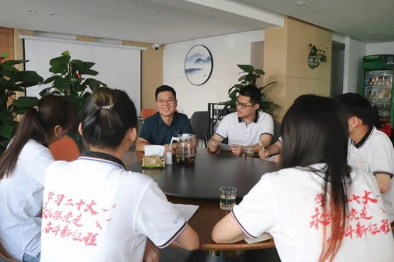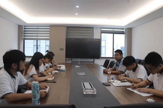 6月30日下午,实践队队员们来到了百达精工椒江厂区,迎接他们的是商学院(原经贸管理学院)2005届公共关系专业的优秀毕业生叶再龙,现任台州百达精工营销副总监。叶再龙学长热情的接待了实践队的队员们,并向他们讲述了他在台州学院度过的美好时光,以及步入社会后的职业生涯。在访谈中,叶再龙学长强调了人际关系处理能力在职场中的重要性,而有良好的抗压能力和情商是处理人际关系的关键,并鼓励实践队员们在大学期间要多参加各类活动,广泛涉猎不同领域的知识,要善于与各类人建立联系,以此更好的锻炼自己,从而更有益于将来的职业发展。