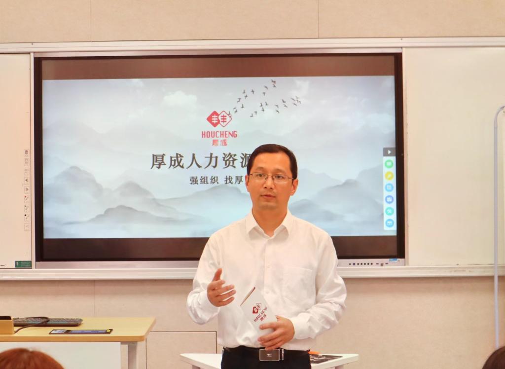 厚成集团培训事业部总经理倪逸夫分享了人力资源工作的发展历程和对社会发展的积极作用。人力资源行业是为用人单位和人才提供相关服务,从而促进人力资源有效开发与优化配置的服务行业,以人为中心,帮助人,提高人,成就人,解决组织用人问题,成己达人,助力企业发展。