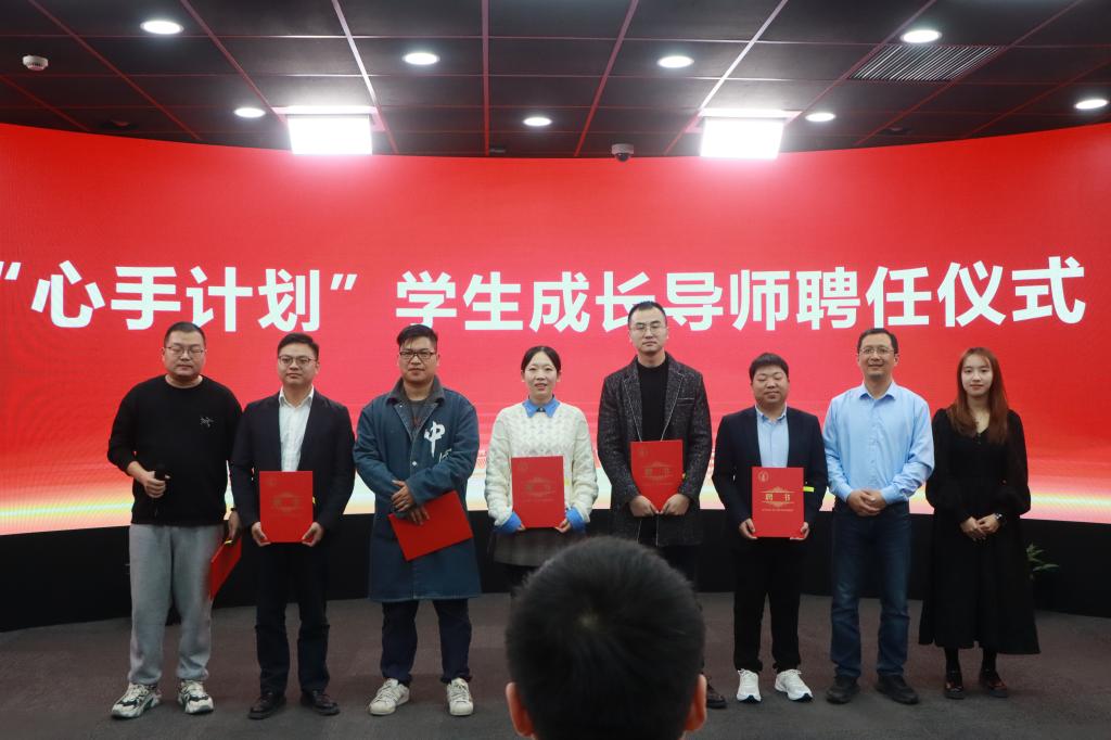 在“心手计划”学生成长导师聘任仪式中,院党委书记马斌、副院长陈国栋分批为陈海云、叶再龙、杨杭阳、徐婧等校友颁发商学院首批学生成长导师聘书。通过师友引领方式,助力在校生成长成才,传承属于商学院学子的责任与回馈之心。