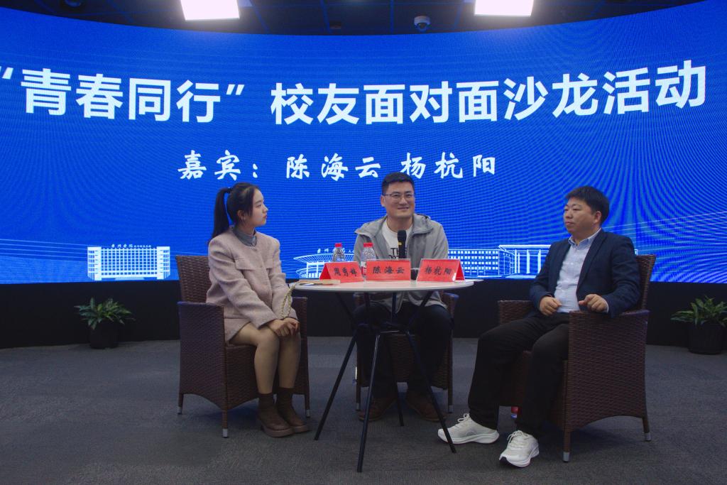 在“青春同行”校友面对面沙龙活动中,校友陈海云、杨杭阳与在校学生分享自身学习、工作及成长经验,对大学期间平衡工作与学习、如何完成从大学到工作的过渡、企业用人需求、毕业生的求职准备等问题做出解答,并寄语同学们要提高专业素养、拓宽人文视野,少年不惧岁月长,彼方尚有荣光在。