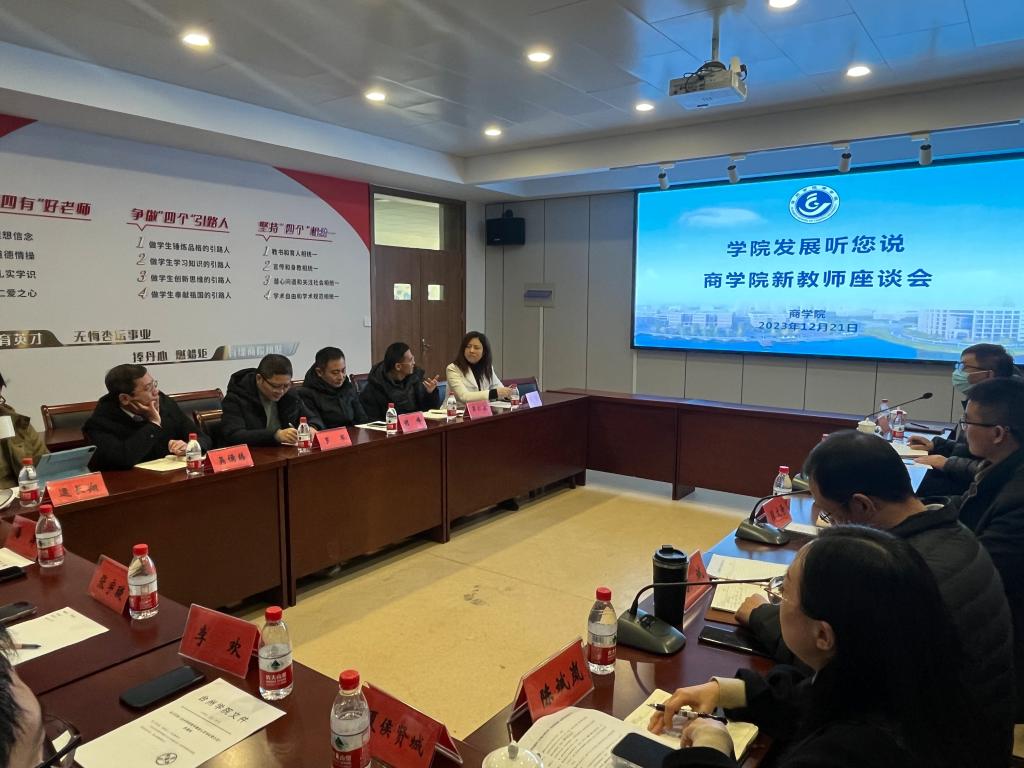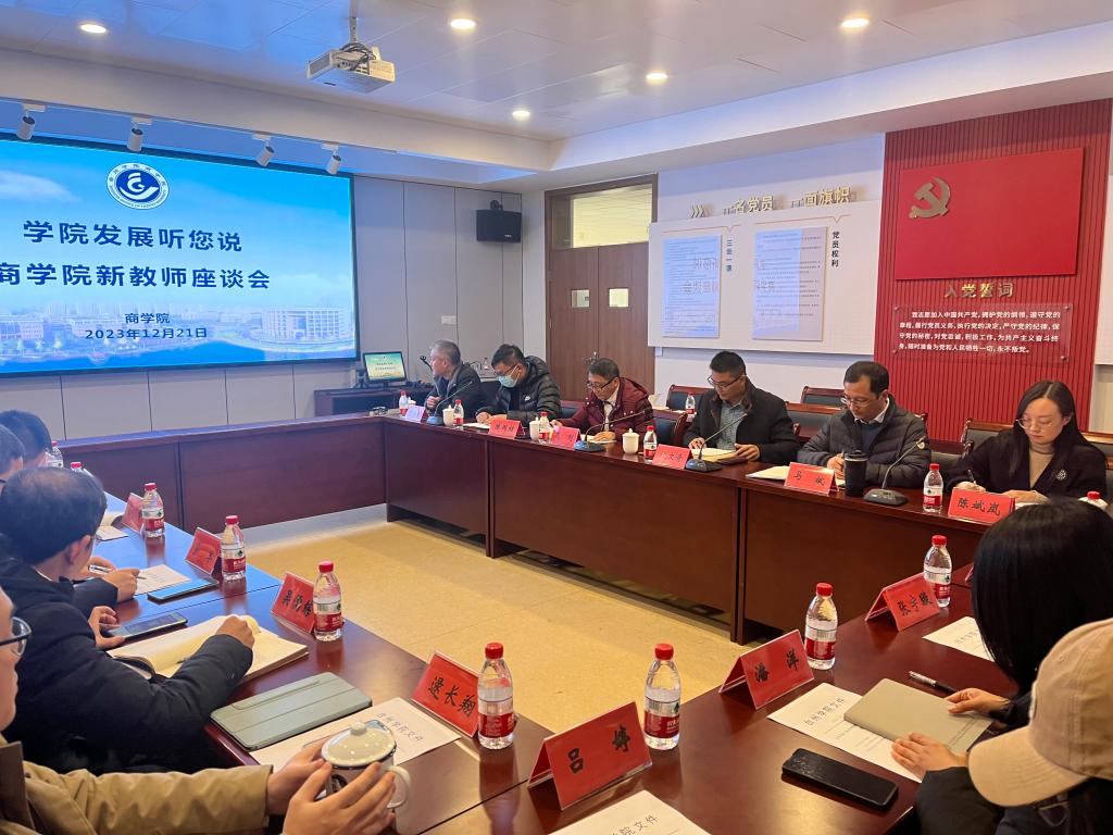 12月21日下午,商学院在307会议室召开新教师座谈会。学院全体党政班子成员,2022年以后入职的新教师参加会议。教务处副处长范剑应邀出席,会议由商学院副院长陈国栋主持。