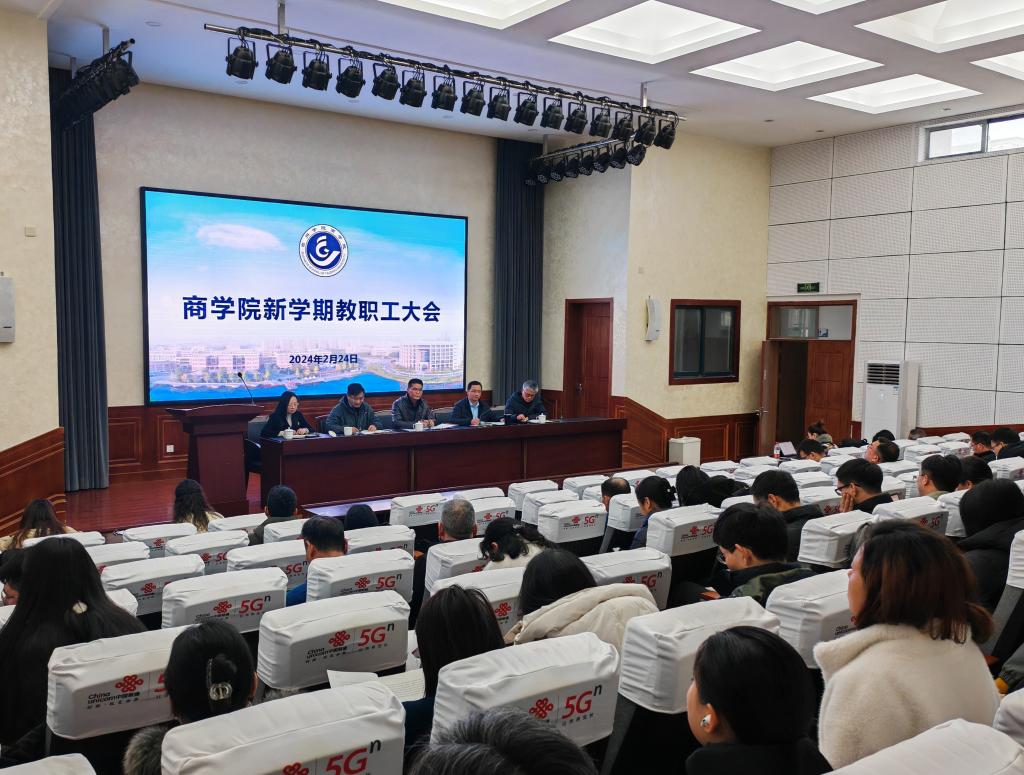 2月24日下午,商学院召开新学期全院教职工大会,部署新学期工作。学院党政班子成员和全体教职工参加会议,会议由段文奇院长主持。